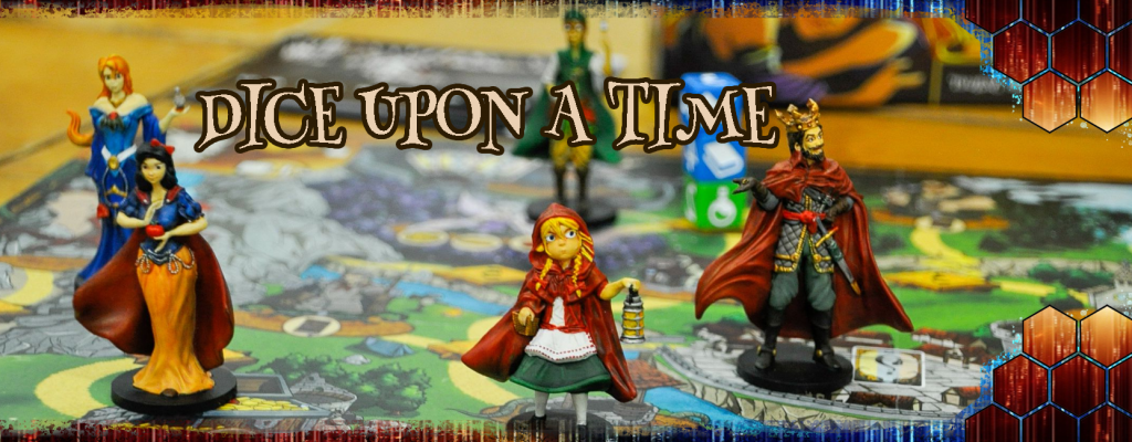 Dice Upon a Time is a family adventure game which guides the players into the magical world of the fairytales by Brothers Grimm. The players assume the roles of Little Red Riding Hood, Snow White, Puss in Boots, Tom Thumb, Rapunzel, the Bremen Town Musicians and many more popular folk heroes to complete quests and gather Adventure Points.